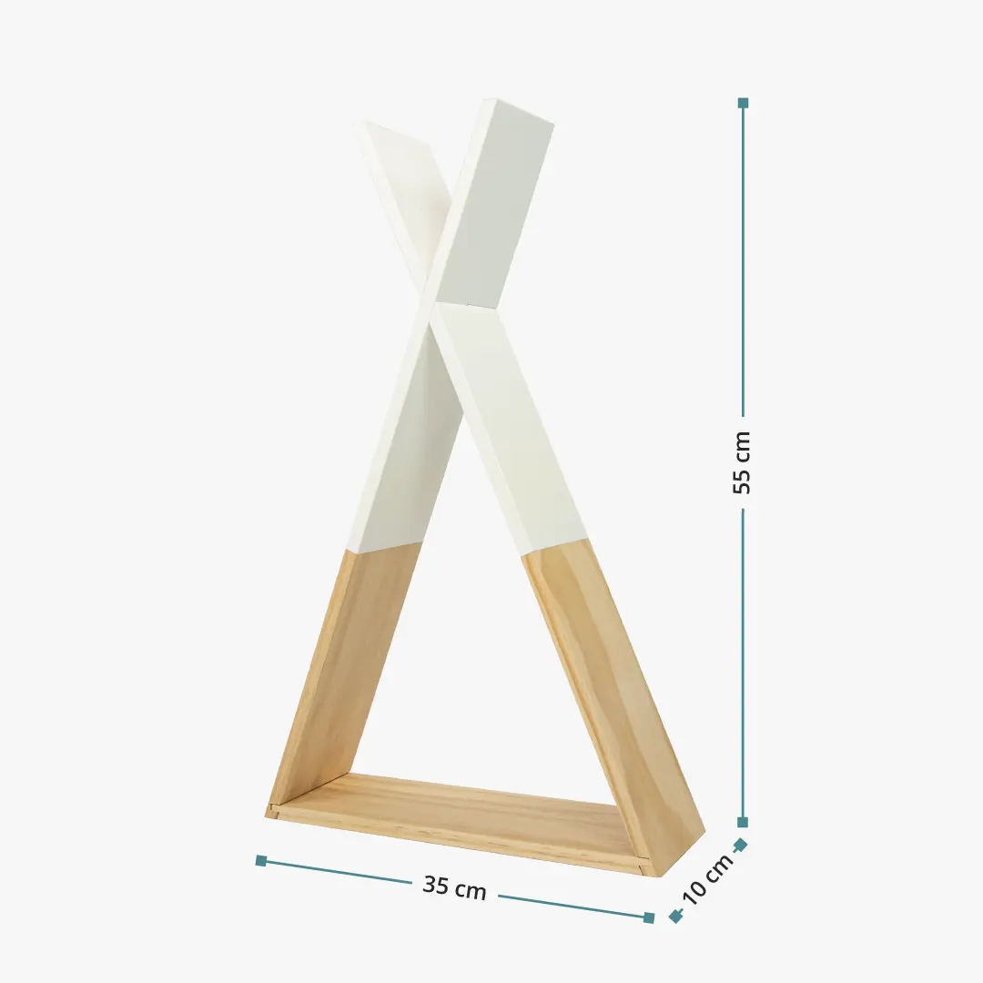 Das Wandregal Hugo aus Kiefernholz im Tipi-Design ist mit einer farblich abgesetzten Teillackierung ein Hingucker in jedem Baby- und Kinderzimmer und bietet eine zusätzliche Ablagefläche für Dekoration und kleine Spielzeuge. Passend zum Wandregal ist die Kleiderstange Hugo erhältlich.