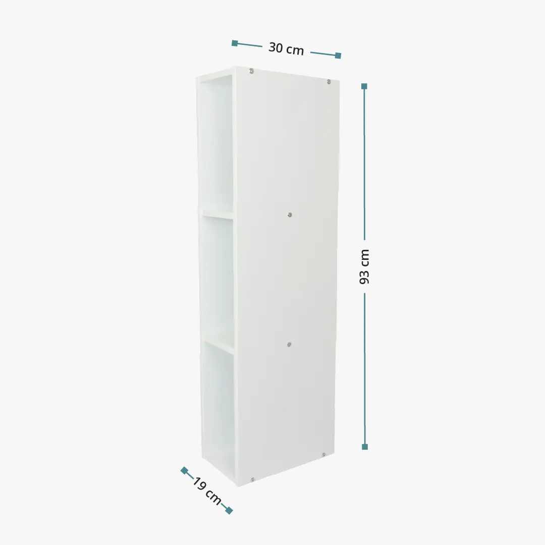 Das Stauraumregal Lasse in weiß ist die ideale Ergänzung zu jeder Wickelkommode. Dank der drei großzügigen Fächer bietet das Regal hinter dem Wickeltisch zusätzlichen Stauraum für Windeln, Handtücher und andere Wickelutensilien. Mithilfe des Regals wird die Lücke zwischen Wand und Kommode geschlossen, die bei der Montage eines Wickelaufsatzes entsteht.