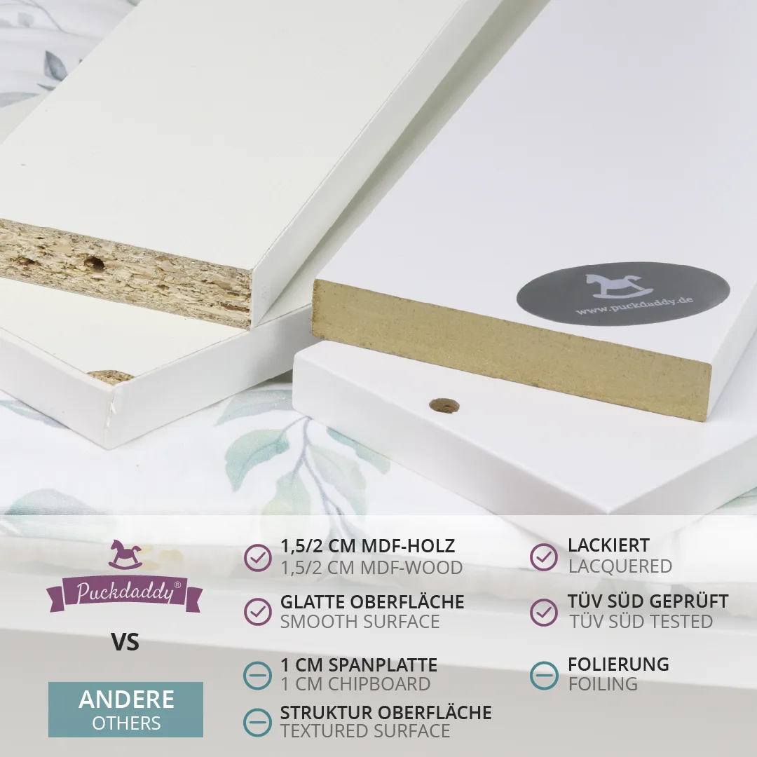 Mit dem Wickelaufsatz Knut entsteht ein praktischer und moderner Wickelplatz. Dieser Wickelaufsatz passt auf alle Kommoden mit einer Tiefe von 45,7-47,2 cm und einer Mindestbreite von 90 cm, wie die schmale IKEA Koppang Kommode mit 3 Schubladen.
