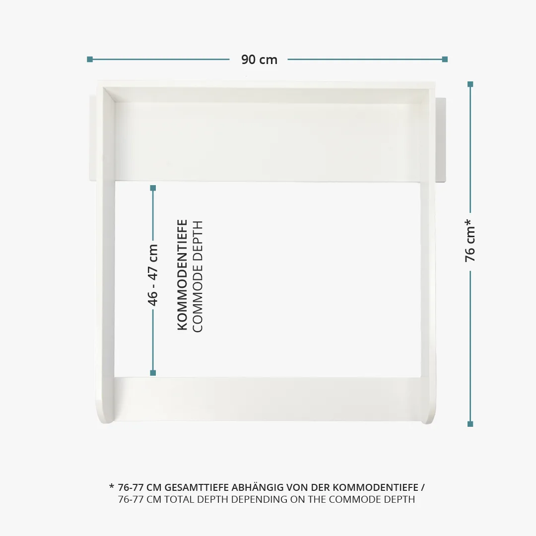 Achtung: Dieser Aufsatz passt nur auf das schmale IKEA Koppang Modell mit einer Kommodentiefe von 45,7-47,2 cm, sowie alle anderen Kommoden mit derselben Tiefe.