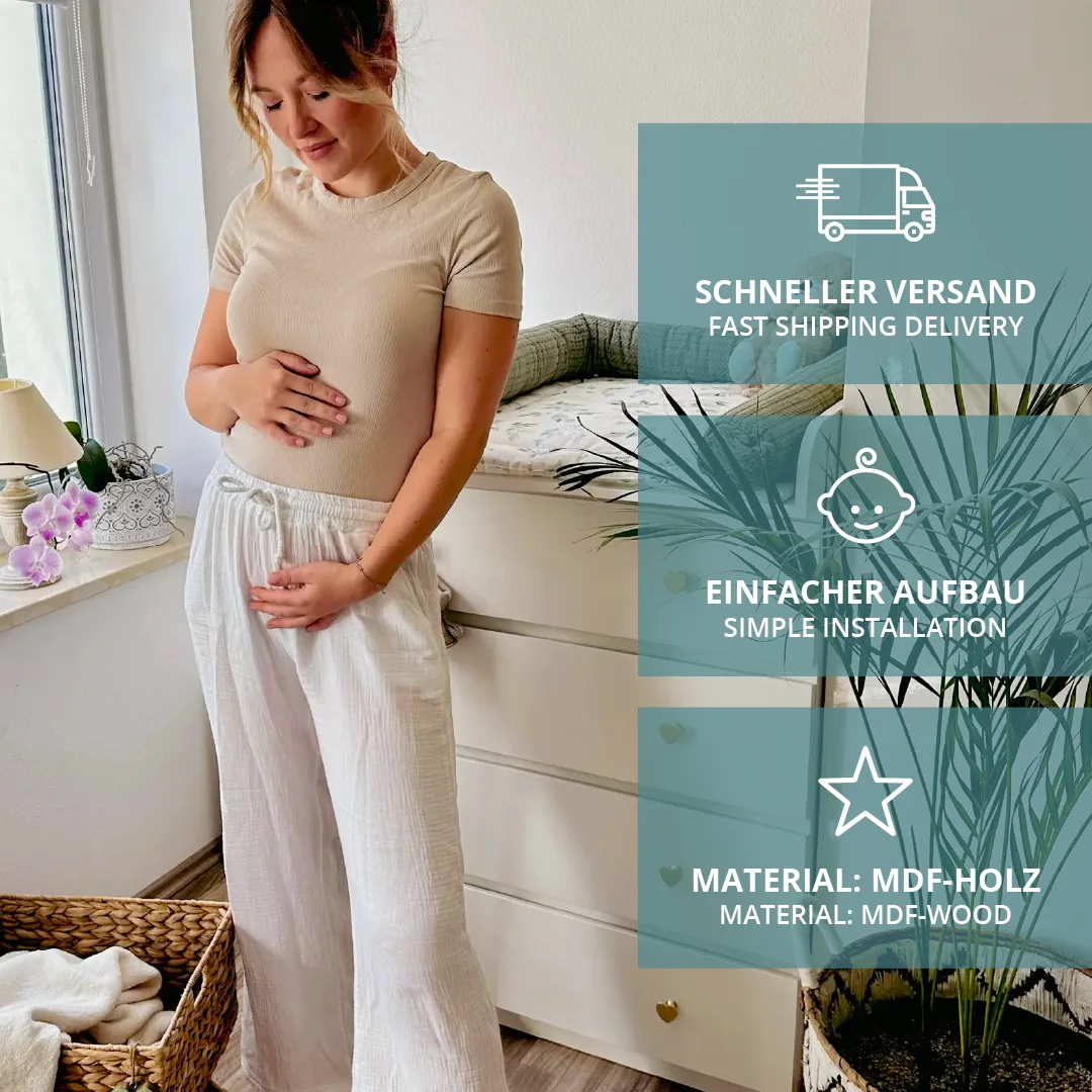 Mit unserem Wickelaufsatz Anton für alle Kommoden mit einer Tiefe von 45,7 bis 47,2 cm wie z.B. die Nordli Kommode der Marke IKEA, funktionierst Du Deine Lieblings-Kommode einfach zu einer modernen Wickelkommode um.