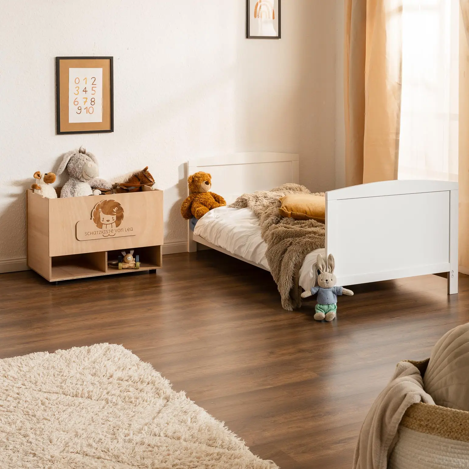 Das Bett ist für alle Standard-Bettmatratzen in den Maßen 140x70 cm ausgelegt und somit für Babys und Kinder im Alter von 0-3,5 Jahren geeignet.