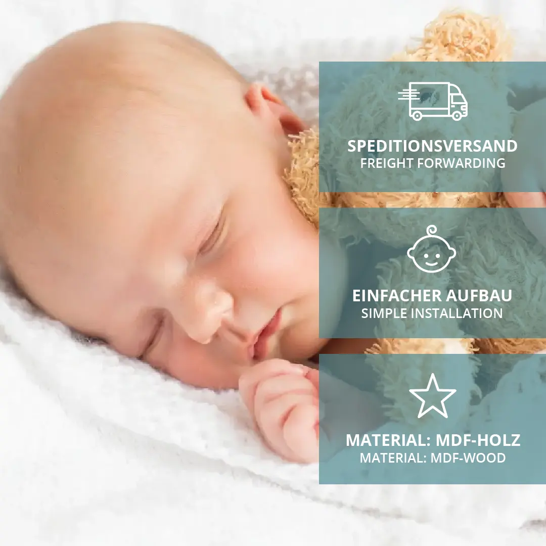 Das Babybett ist für alle Standard-Bettmatratzen in den Maßen 70x140 cm ausgelegt und somit für Babys und Kinder im Alter von 0-5 Jahren geeignet.