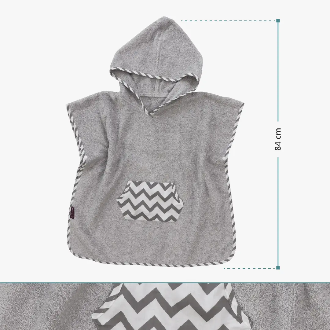 Der softe Badeponcho Svea aus hochwertigem Baumwoll-Frottee mit farblich abgesetztem Saum und Kängurutasche mit Chevron ist das perfekte Bade-Accessoire fürs Badezimmer, Freibad oder den Urlaub. Als praktischer Überwurf für den Indoor- und Outdoor-Badespaß hält der Poncho kuschelig warm und trocknet die nasse Haut des Kindes ab. Der Poncho mit Kapuze für Kleinkinder im Altern von 1-4 Jahren ist sehr saugstark und sanft zur zarten Haut.