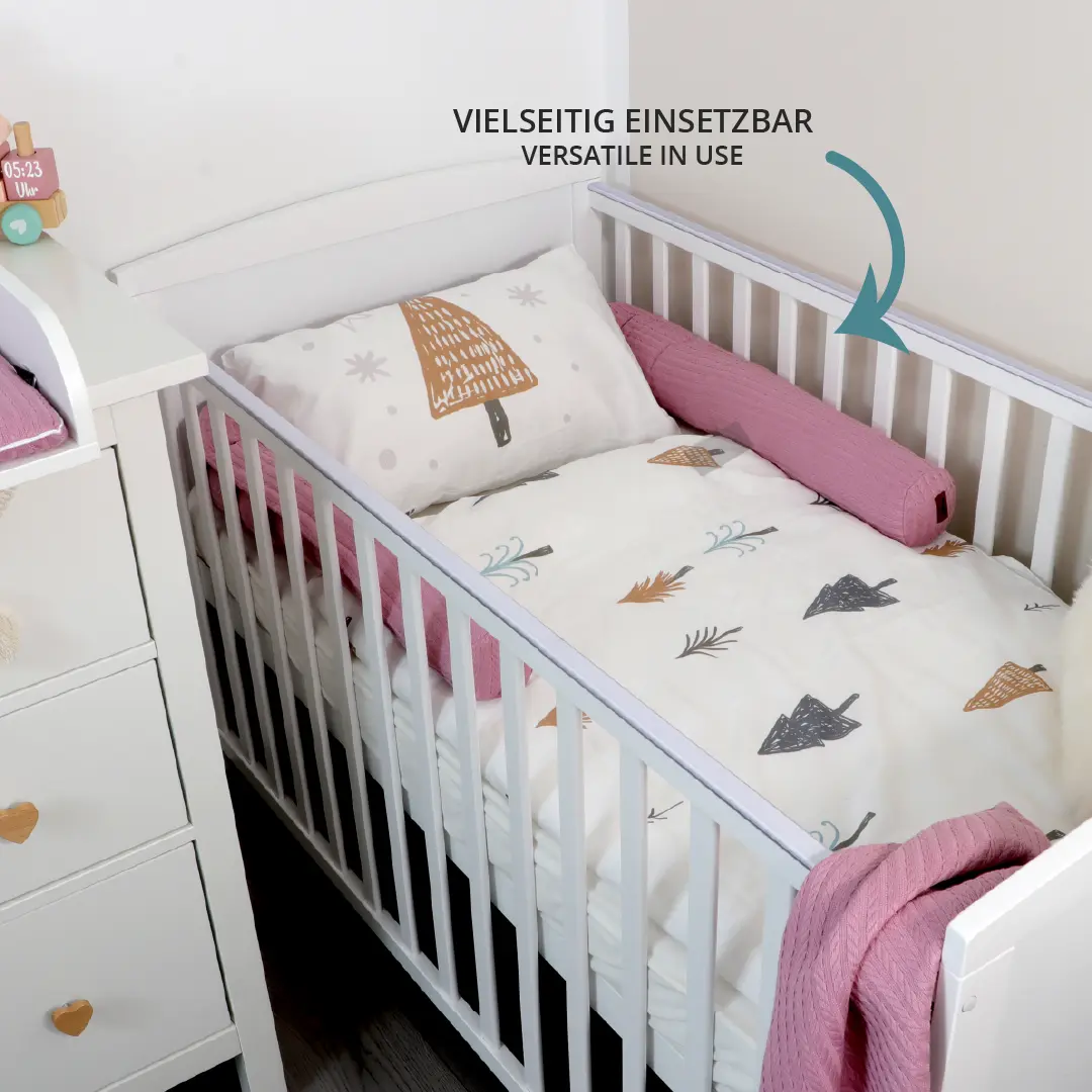 Auch auf dem Wickeltisch bietet sie als Wickelumrandung zusätzlichen Schutz und Komfort.
