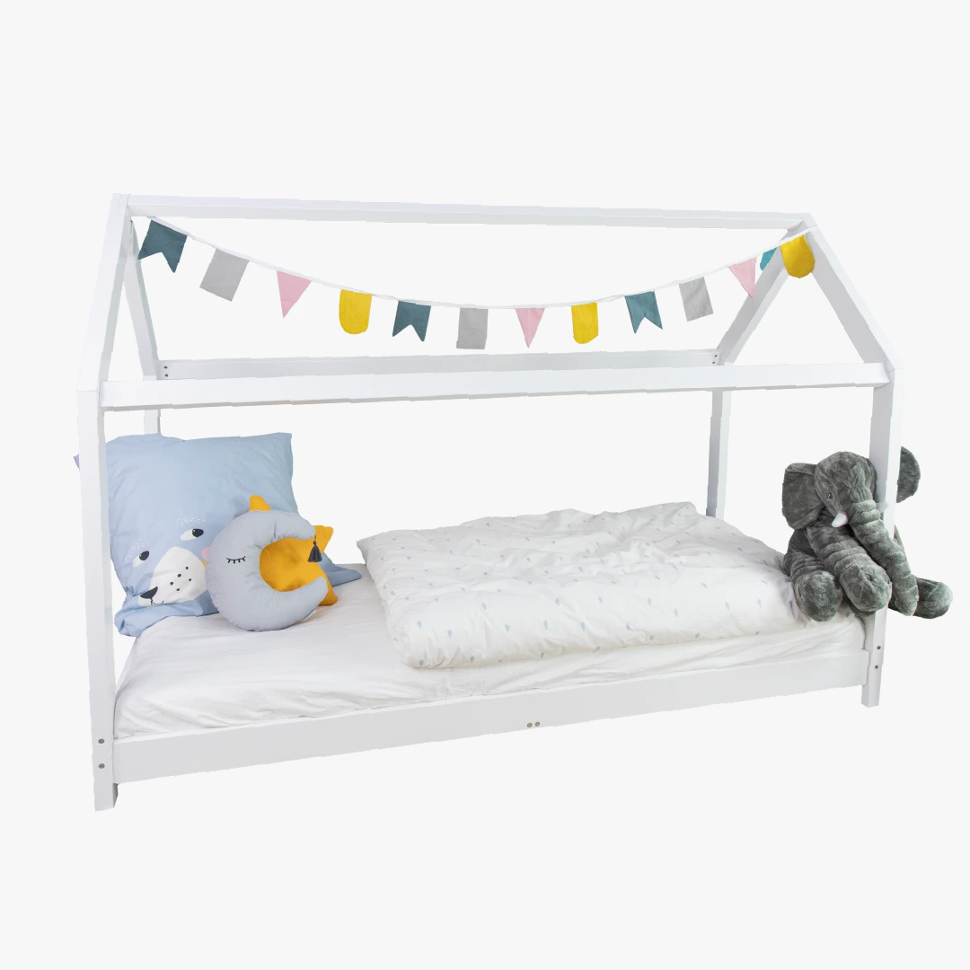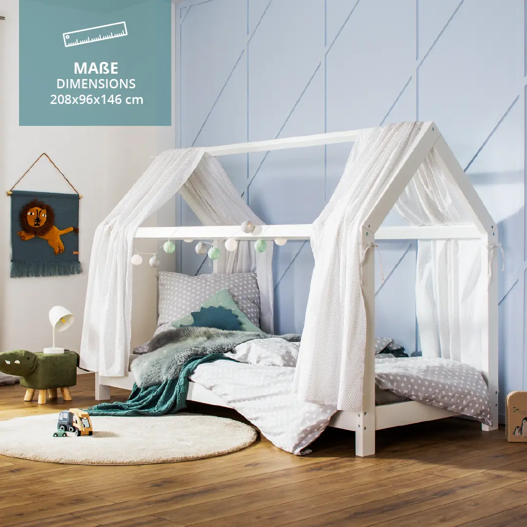 Der perfekte Ort zum Schlafen, Vorlesen, Spielen oder Kuscheln. Das Hausbett Finn in weiß lädt zu einem erholsamen Schlaf bei Nacht wie auch zu Spiel und Spaß am Tag ein. Im modernen Design ist das Bett ein Blickfang in jedem Kinderzimmer.