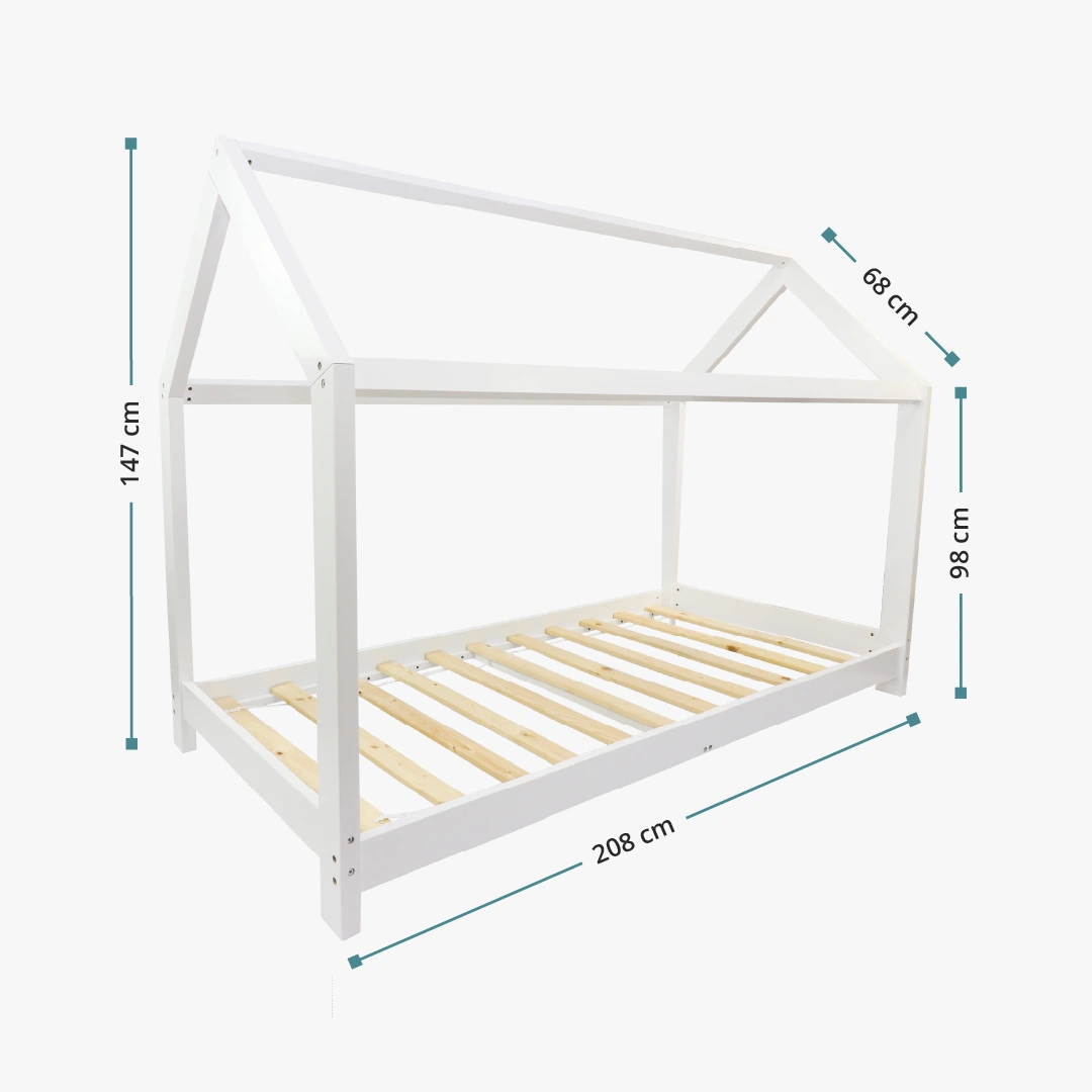 Das Hausbett ist für alle Standard-Bettmatratzen in den Maßen 90x200 cm ausgelegt.