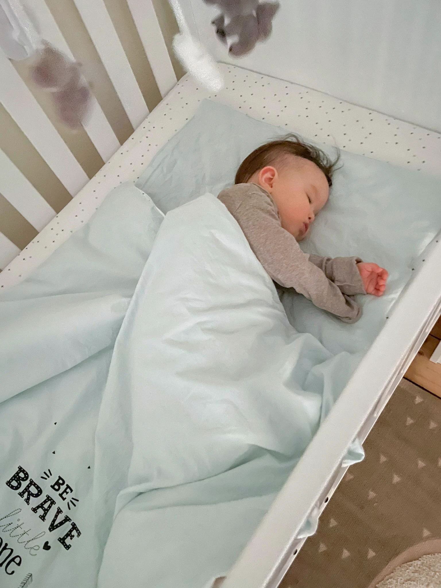 Der Lattenrost ist dreifach höhenverstellbar. Für Lana, die mittlerweile 8 Monate alt ist, haben wir die mittlere Position gewählt – hoch genug, damit sie nicht hinauskrabbeln kann, und niedrig genug, um ihre ersten Versuche zum Hochziehen sicher zu meistern.