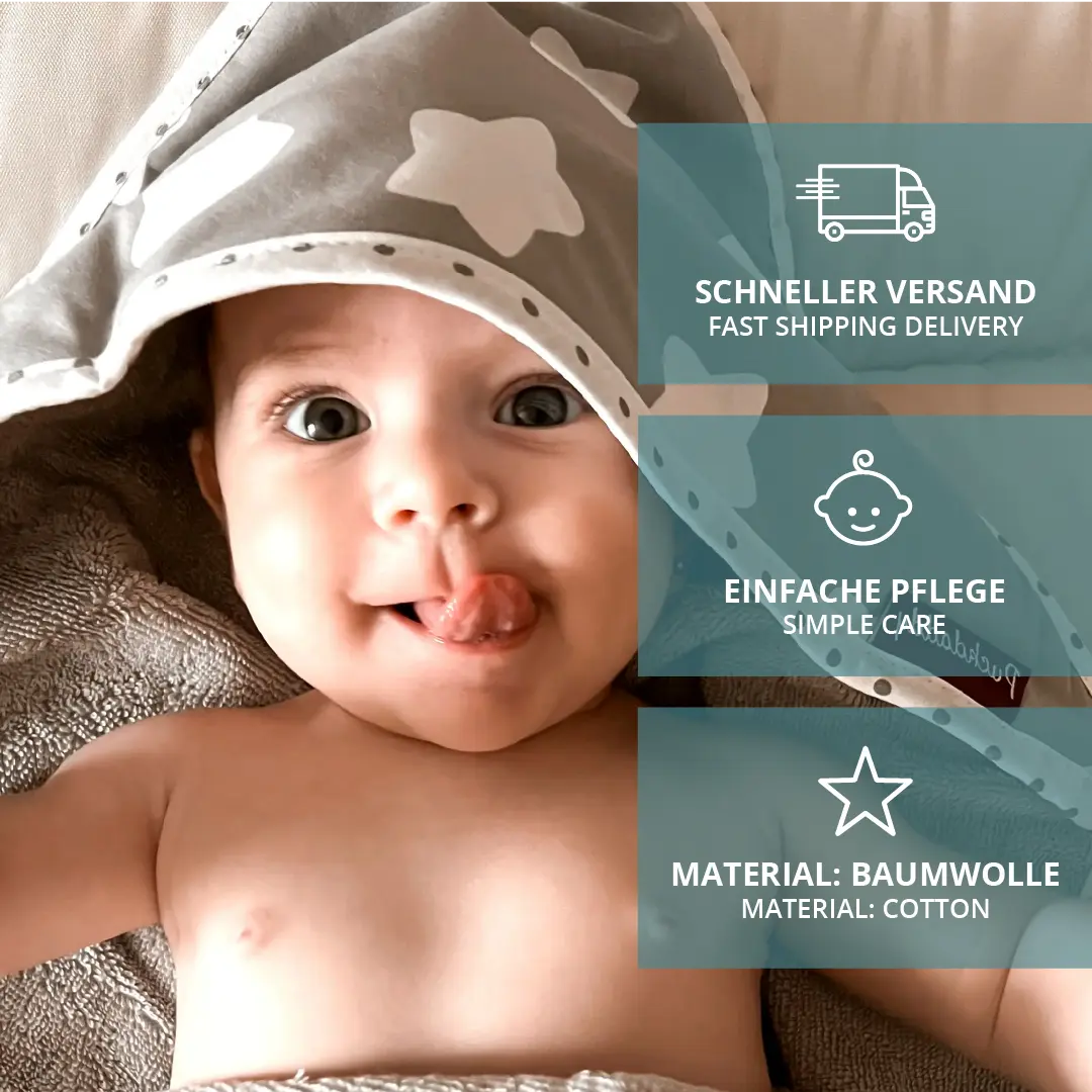 Dieses Babyhandtuch ist super kuschelig und hat eine tolle Größe. Was mir besonders wichtig war, dass das Handtuch aus Baumwolle ist und OEKO-TEX Standard 100 zertifiziert ist für unsere kleine Maus. Würd ich wieder kaufen