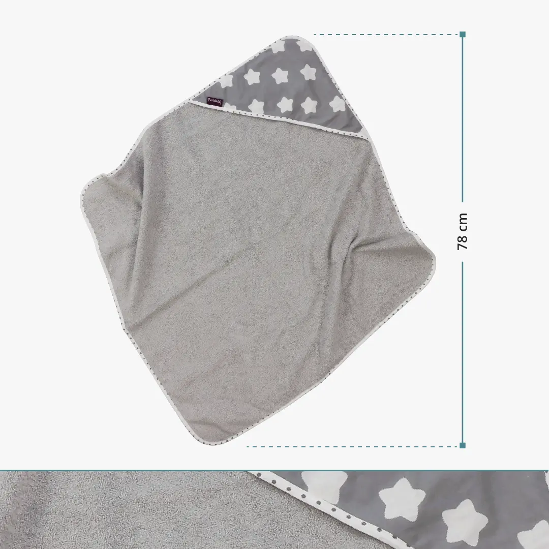 Das softe Kapuzenhandtuch Finja aus hochwertigem Baumwoll-Frottee, farblich abgesetztem Saum und Sternen ist das perfekte Bade-Accessoire fürs Badezimmer, Freibad oder den Urlaub. Geeignet für Babys und Kleinkinder im Alter von 0-3 Jahren ist sehr saugstark und super sanft zur zarten Haut.
