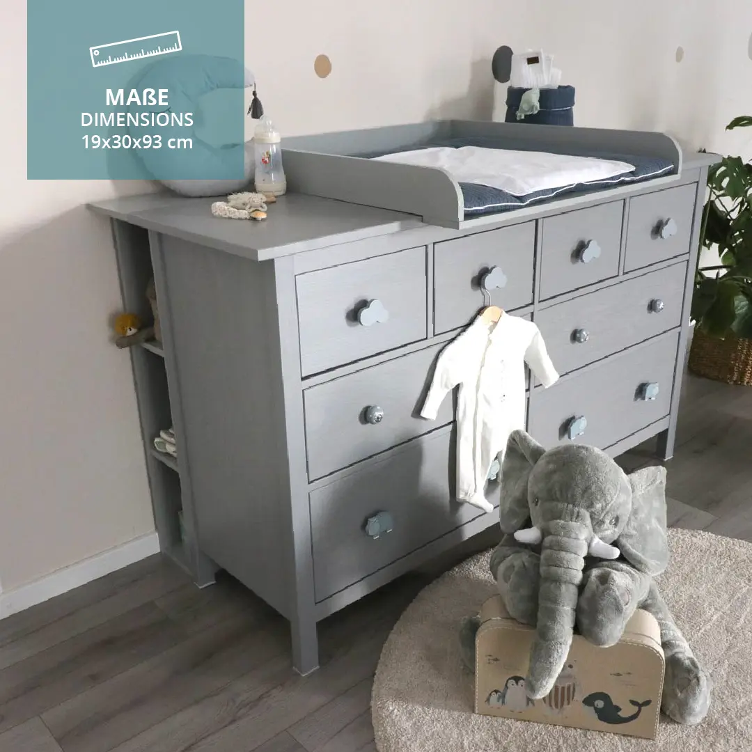 Unsere Stauraumregale bieten Dir nicht nur die perfekte Möglichkeit, kleinen Dingen ihren eigenen Platz zu geben, sondern sorgen auch dafür, dass selbst der Platz hinter Möbeln optimal genutzt wird. Das Stauraumregal passt perfekt in die Lücke hinter einer Kommode oder einem Wickeltisch und bietet Dir zusätzlichen Platz für Windeln, Pflegeprodukte und andere wichtige Dinge.