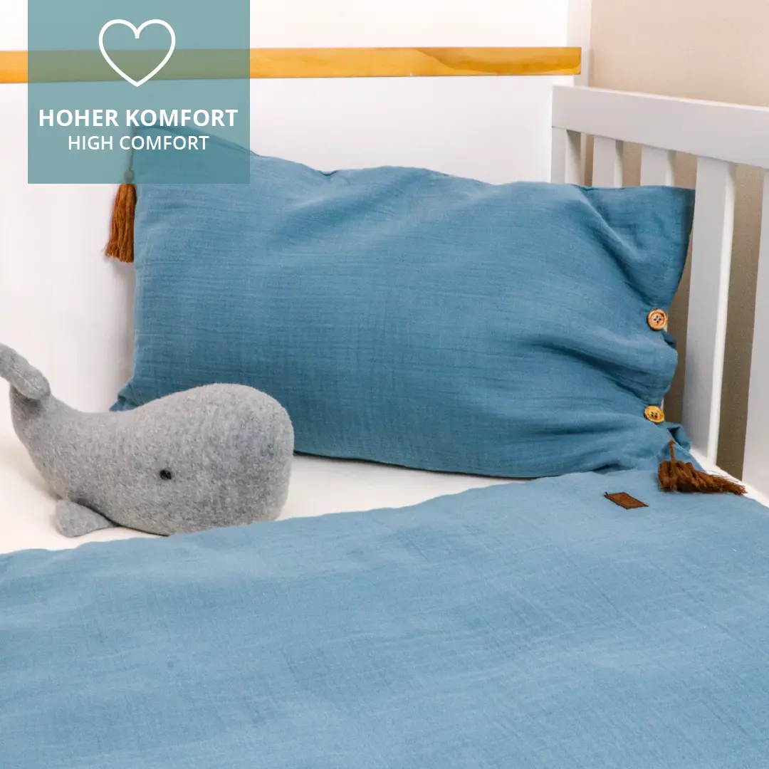 Ein ruhiger Kinderschlaf ist ein Segen - und dass nicht nur für die Eltern sondern auch für die Kinder selbst. Um den Schlaf Deines Kindes zu fördern, findest Du bei uns qualitativ hochwertige Schaum- und Federkernmatratzen in den Standardmaßen 70x140 cm. Aber auch auf die richtigen Materialien der Bettbezüge, Bett- und Wiegen-Sets kommt es an. So achten wir darauf, dass nur weiche und reine Baumwolle verwendet wird.