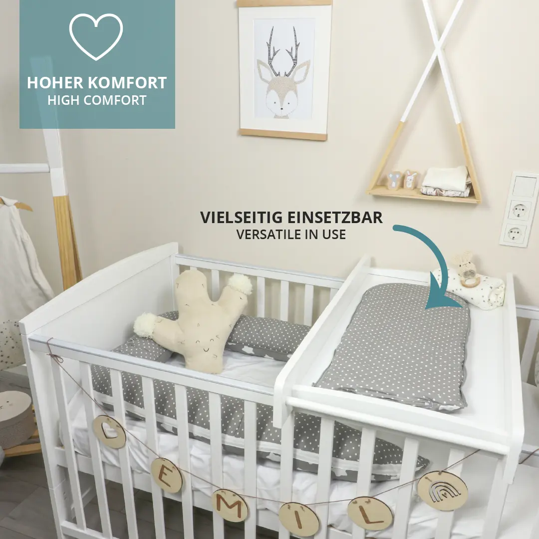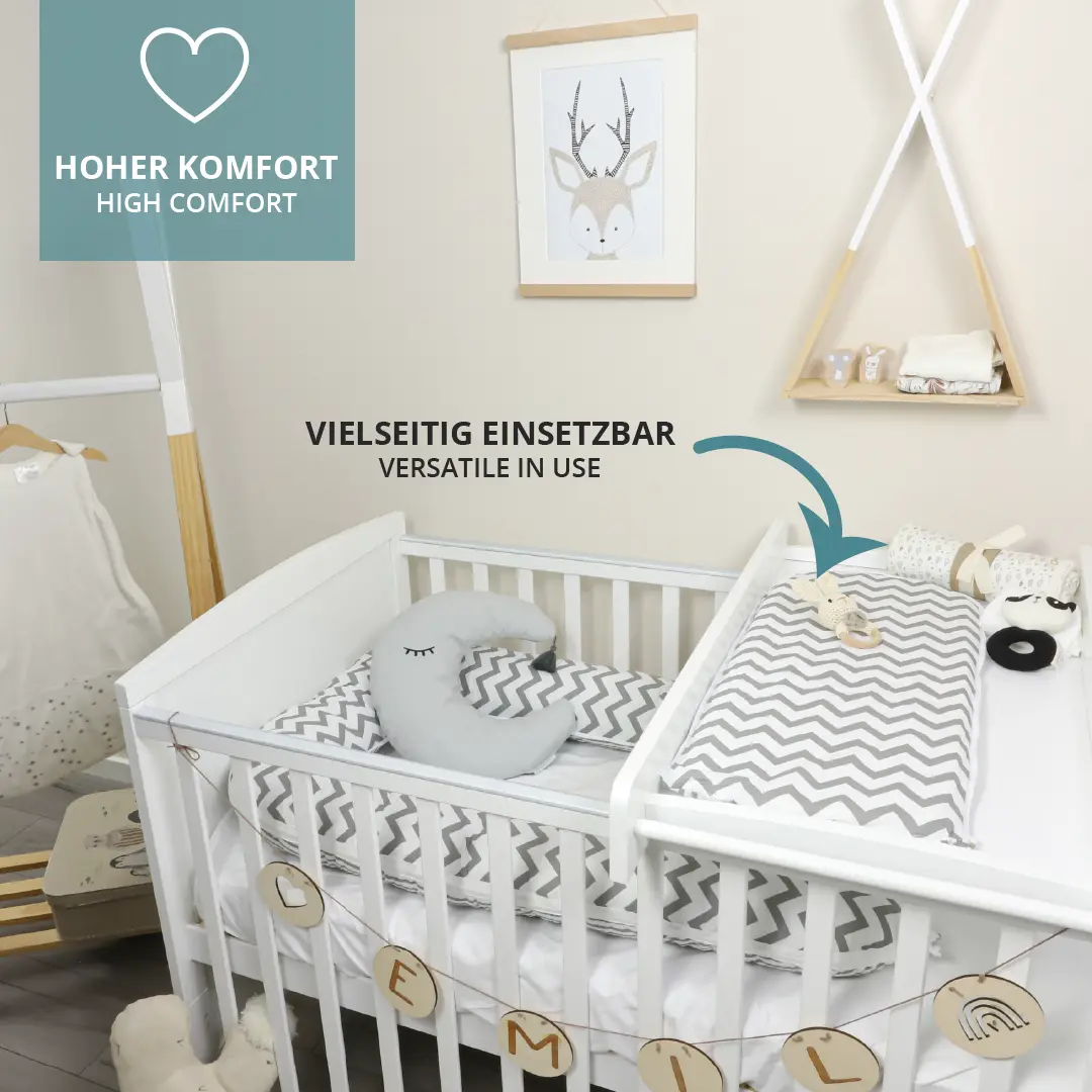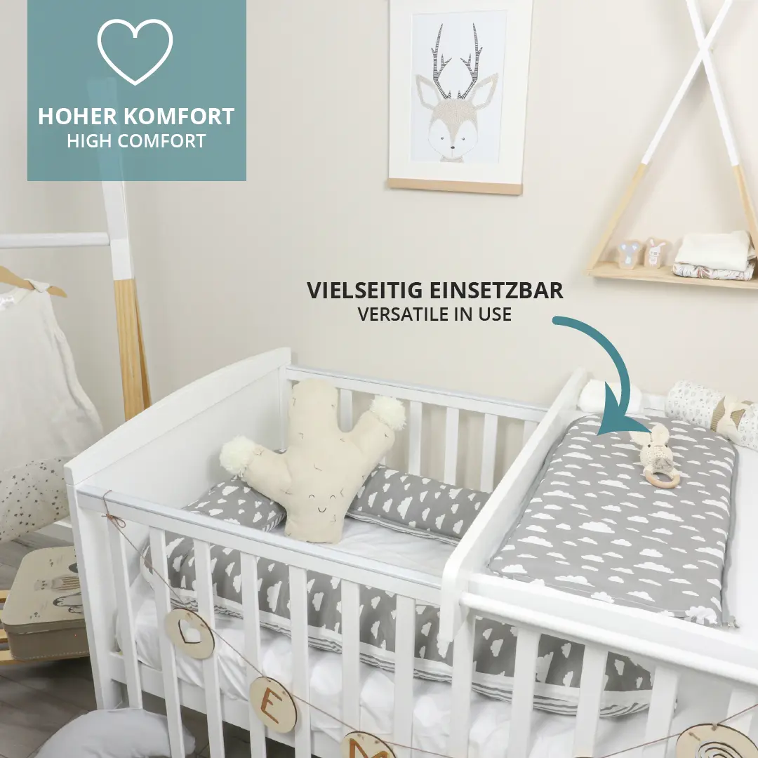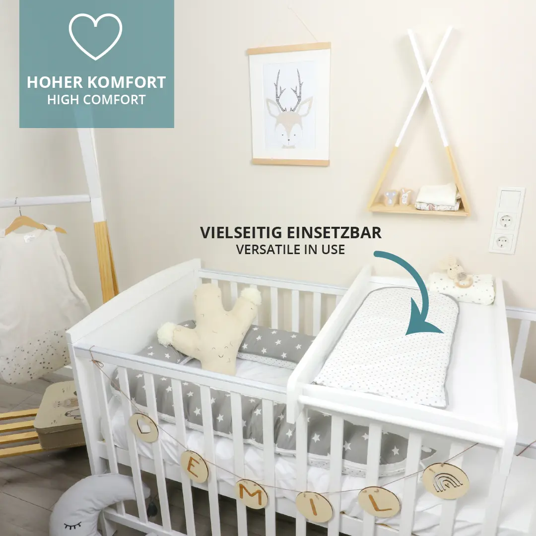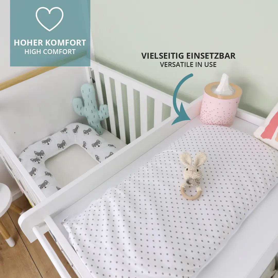 Babynester werden auch gerne Kokons genannt, denn sie umwickeln die Kleinen und bieten ihnen einen sicheren und warmen Ort, der sie an den Mutterleib erinnert. Ein Babynest ist in vielerlei Hinsicht praktisch: Es dient in erster Linie natürlich als kuscheliger Schlafplatz für Dein Baby. Das Nest grenzt den Raum im Babybett etwas ein, sodass das Baby sich nicht zu viel umherdrehen kann. Die Babynest-Schlange dient zudem als schützender Rand.