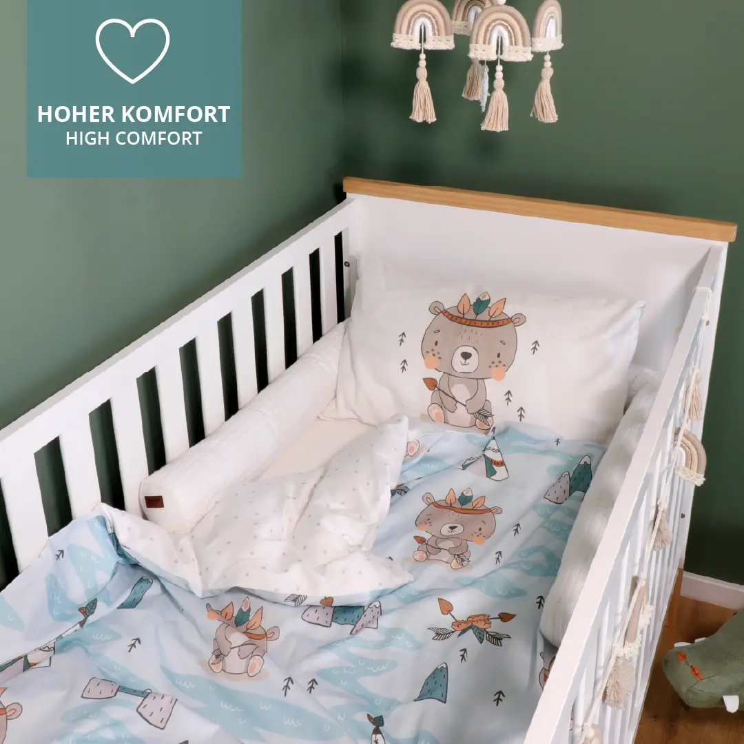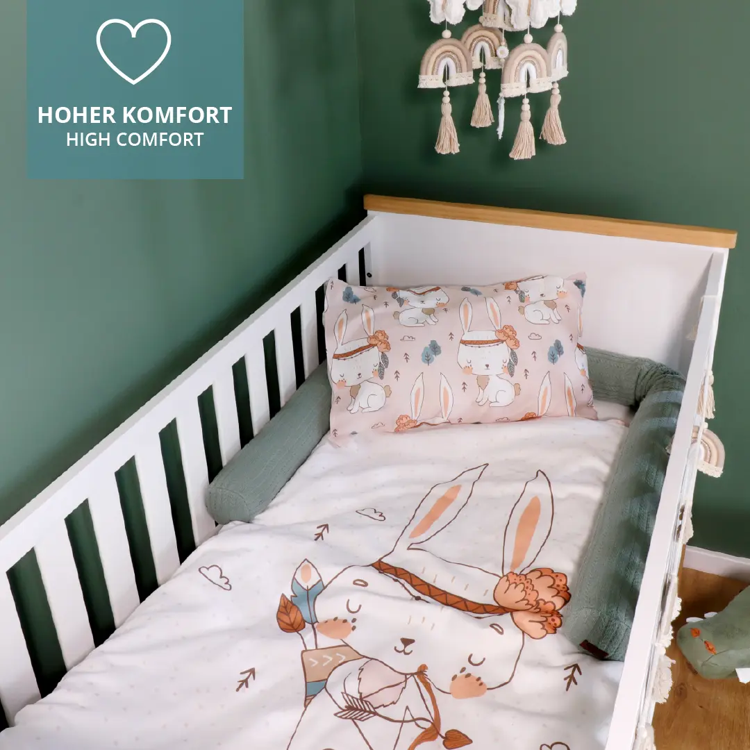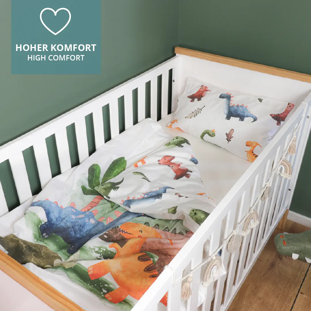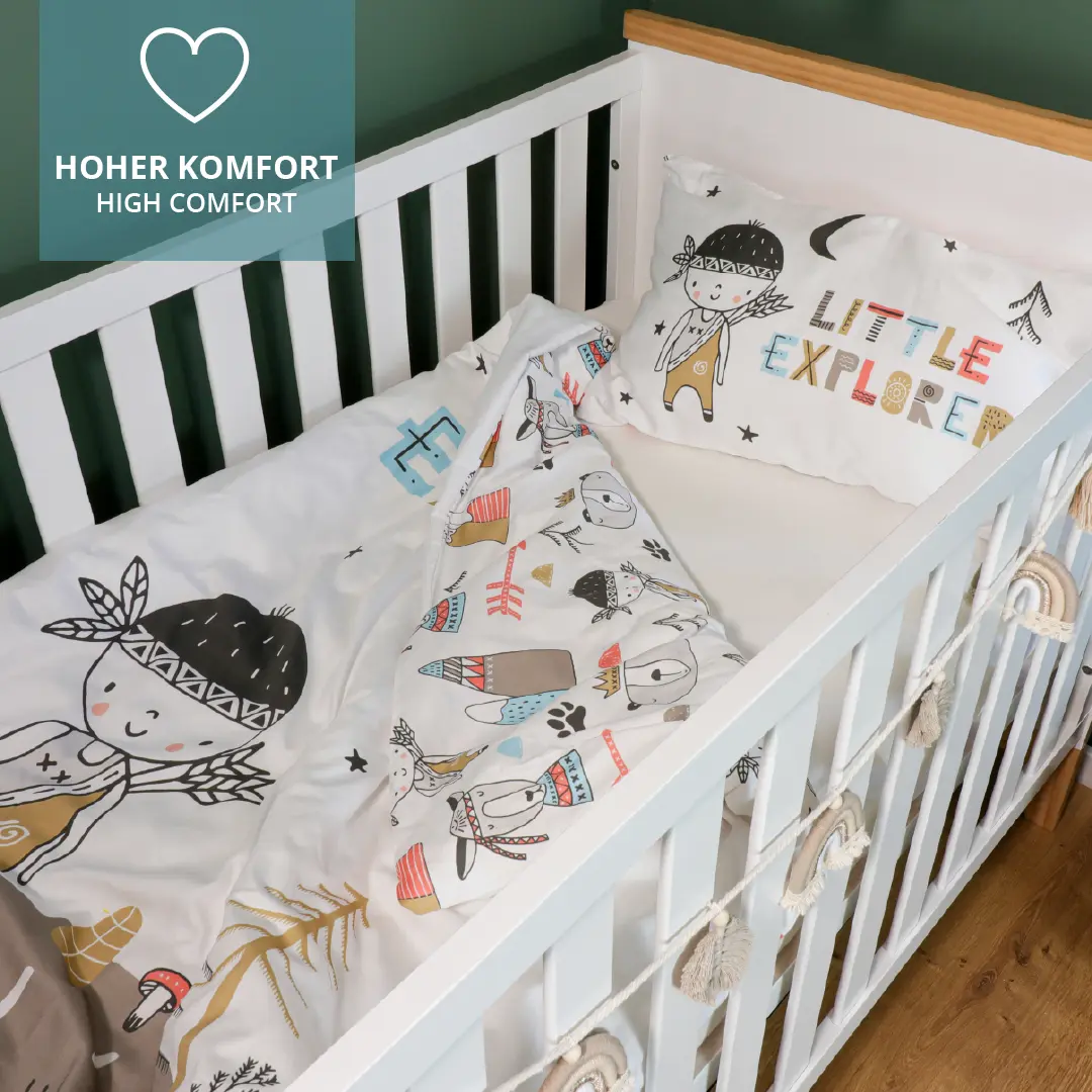 Für einen guten Schlaf ist neben einer guten Matratze auch die richtige Bettwäsche ausschlaggebend für das Wohlbefinden Deines Kindes. Für Babys und Kleinkinder sind daher die Verwendung hochwertiger und reiner Baumwollmaterialien von hoher Bedeutung. Unsere Bettwäsche-Sets mit Kopfkissen und Bettdeckenbezug schmiegen sich angenehm an die Haut an. Wie alle unsere Textilen sind auch unsere Bettwäschen mit einen OEKO TEX 100 Standard ausgezeichnet.