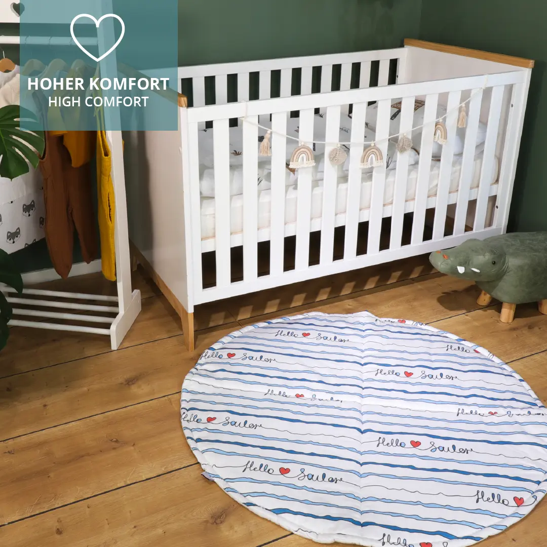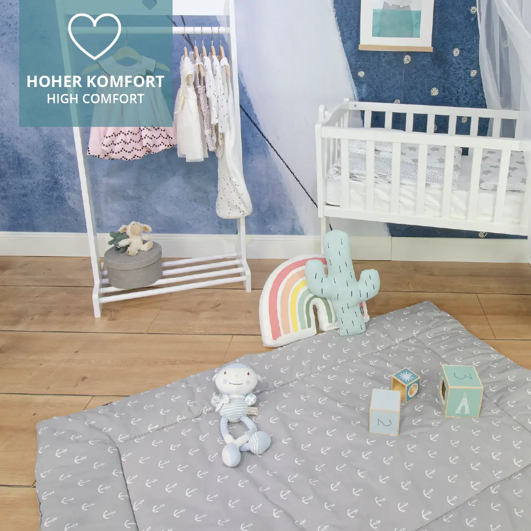 Auf dem Boden kann es viel zu hart für Dein Kind sein, daher ist bei der Krabbeldecke auf eine gute Polsterung zu achten. So kannst Du das potenzielle Verletzungsrisiko zuverlässig minimieren, sollte Dein Schatz doch einmal umfallen – und zugleich schützt Du Deinen Liebling auch vor Bodenkälte.