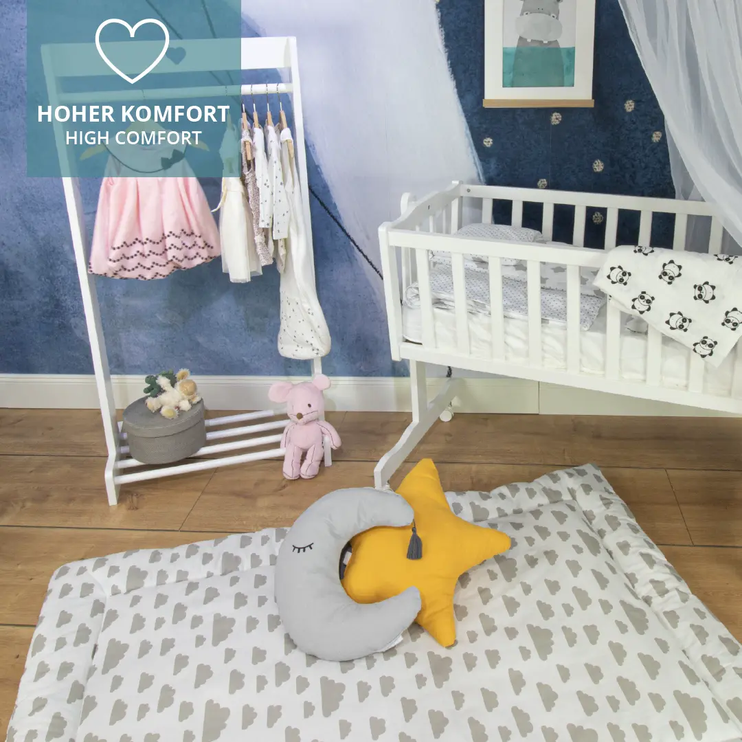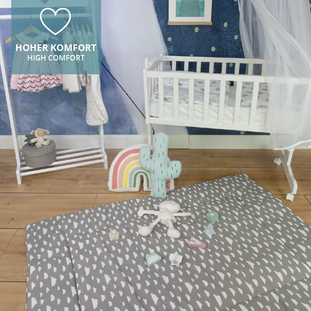 Die Puckdaddy Krabbeldecken sind alle liebevoll designt – die zeitlosen Motive mit Wölkchen, Sternen, floralen Mustern und mehr fügen sich dabei nicht nur harmonisch in Deinen individuellen Babyzimmer-Stil ein, sondern bieten sich auch für die spätere Nutzung an, wenn Dein Kind dem Krabbelalter entwachsen ist.