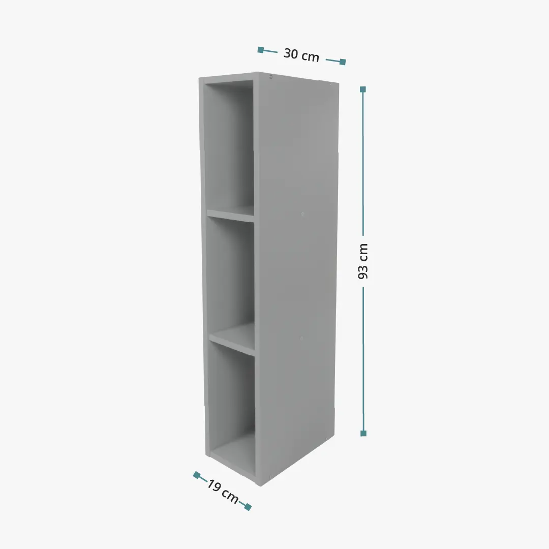 Das Stauraumregal Lucas in grau ist die ideale Ergänzung zu jeder Wickelkommode. Dank der drei großzügigen Fächer bietet das Regal hinter dem Wickeltisch zusätzlichen Stauraum für Windeln, Handtücher und andere Wickelutensilien. Mithilfe des Regals wird die Lücke zwischen Wand und Kommode geschlossen, die bei der Montage eines Wickelaufsatzes entsteht.