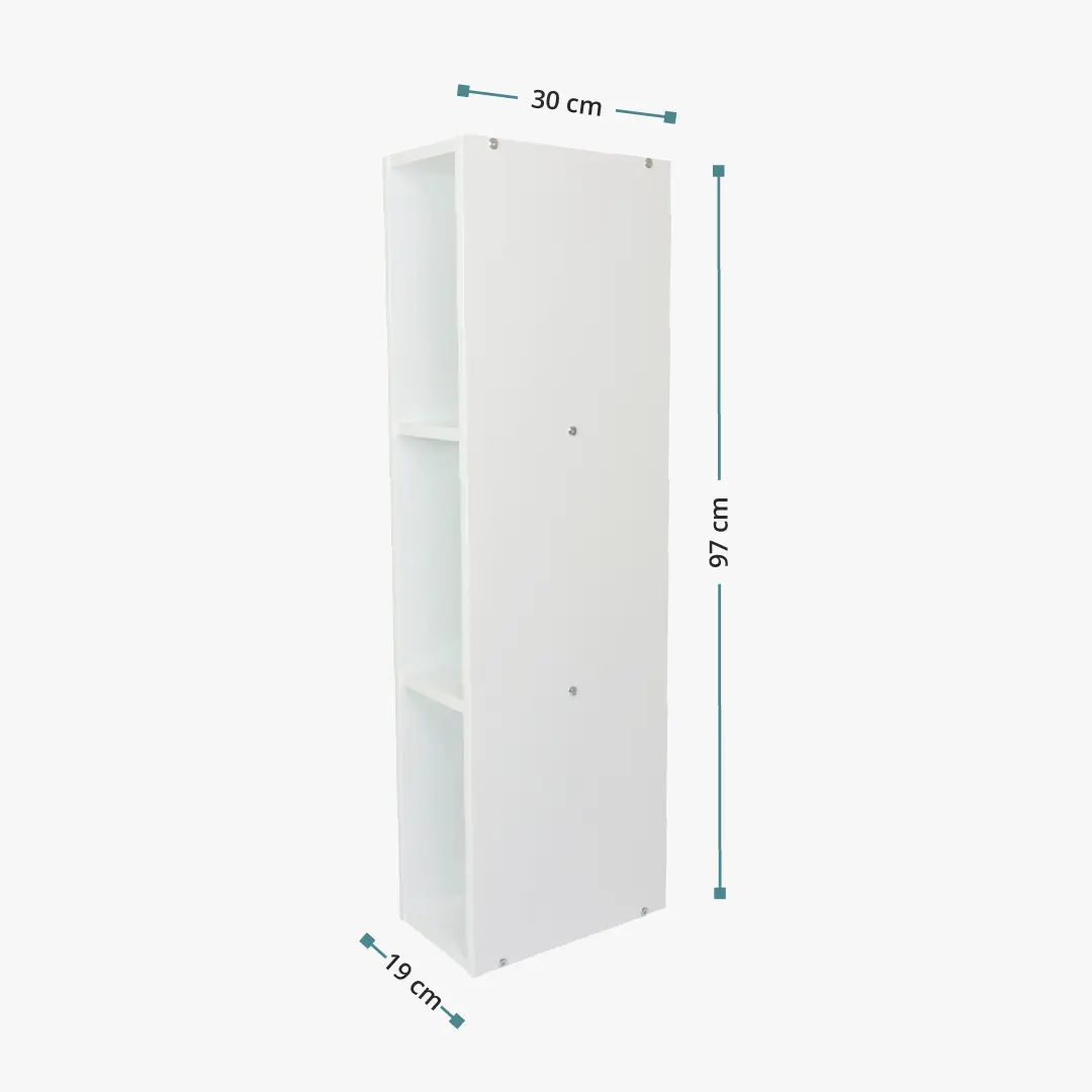 Das Stauraumregal Max in weiß ist die ideale Ergänzung zu jeder Wickelkommode. Dank der drei großzügigen Fächer bietet das Regal hinter dem Wickeltisch zusätzlichen Stauraum für Windeln, Handtücher und andere Wickelutensilien. Mithilfe des Regals wird die Lücke zwischen Wand und Kommode geschlossen, die bei der Montage eines Wickelaufsatzes entsteht.