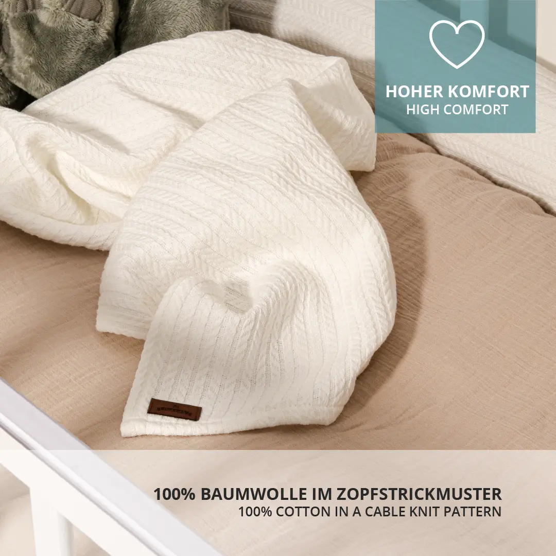 Die Decke ist ganz einfach mit weiteren Produkten aus der Zopfstrickmuster-Kollektion kombinierbar.