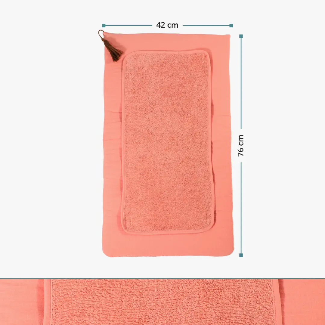 Der abnehmbare Frotteebezug ist ein praktisches Detail für den täglichen Wickelgebrauch, welcher sich im Handumdrehen an den Ecken mithilfe von Metall-Druckknöpfen entfernen und mühelos waschen lässt.
